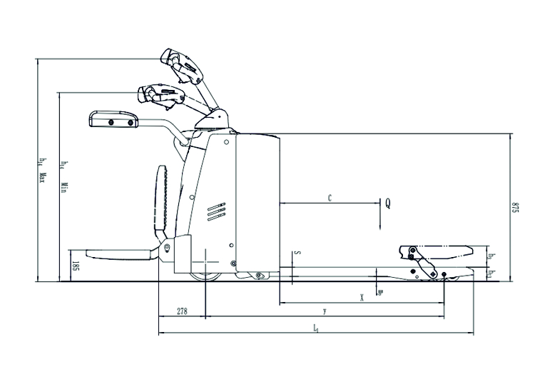 Transpaleta eléctrica con plataforma y brazos de protección para el operador 2.0/2.5/3.0t.